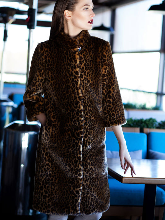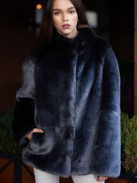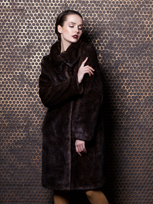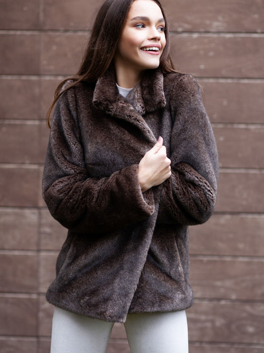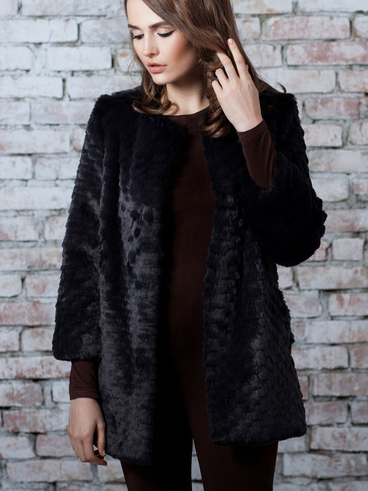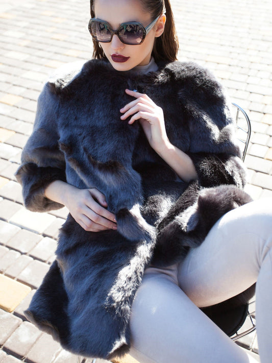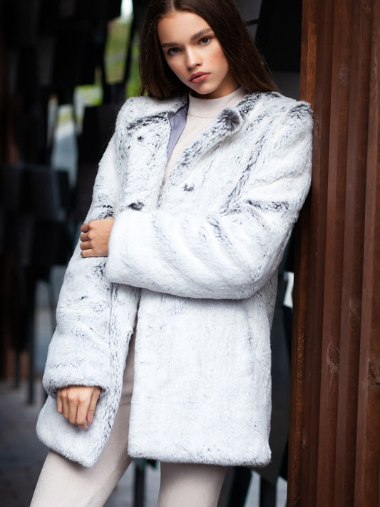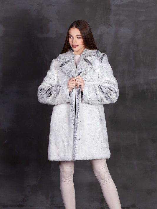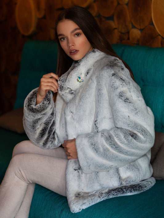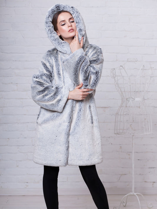 Faux fur women's coat - Chinchilla Knitted Graphite