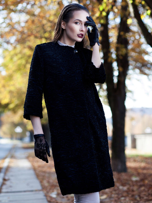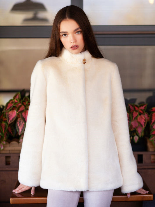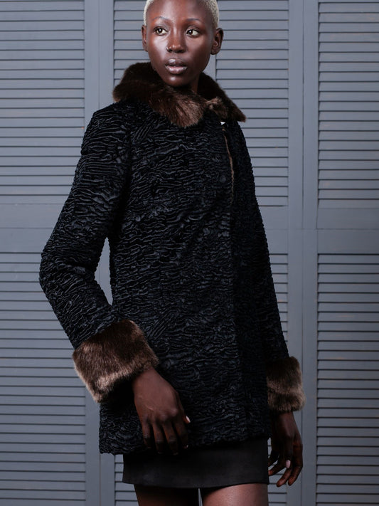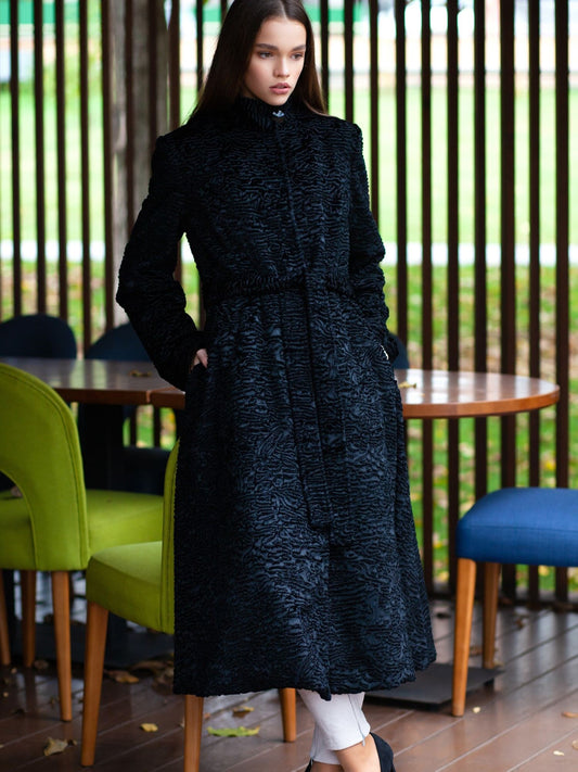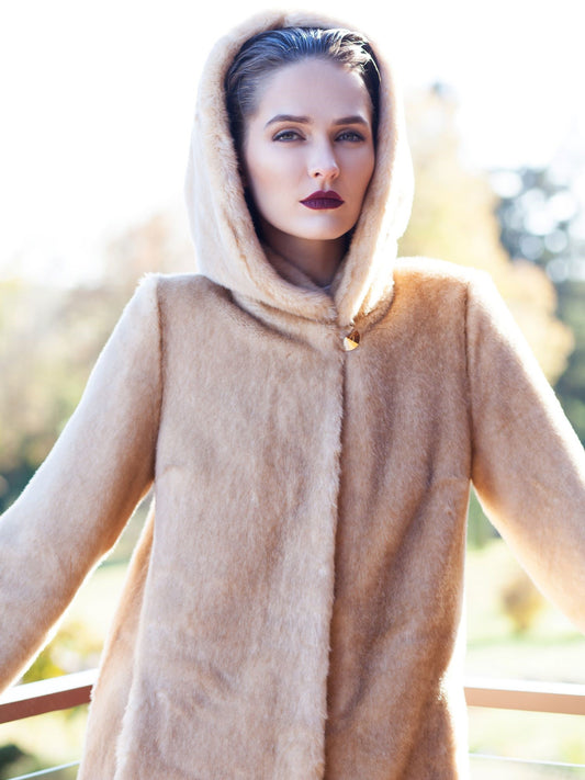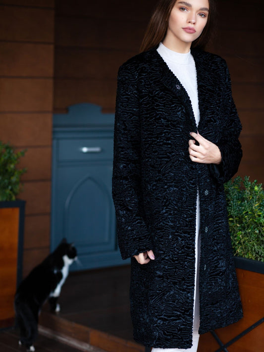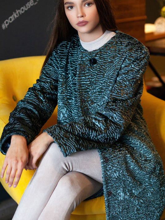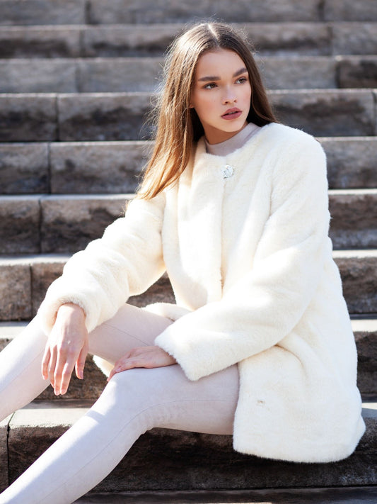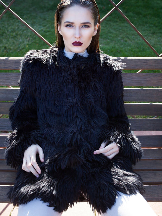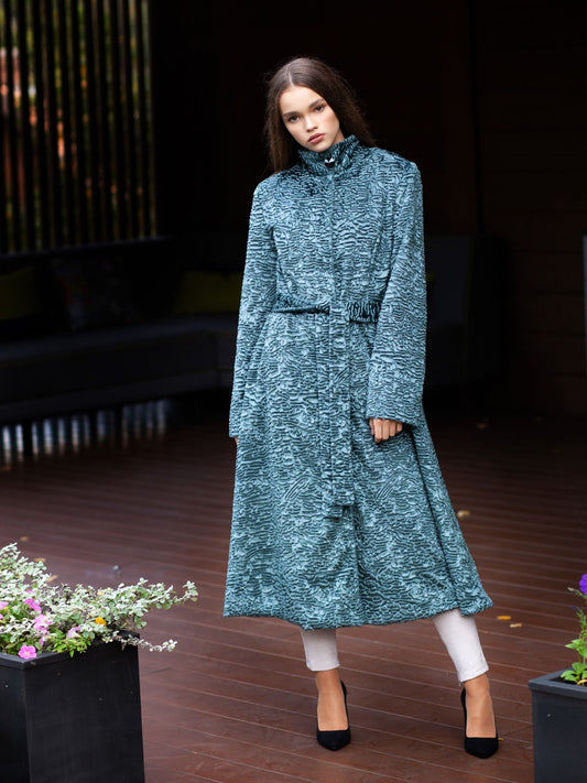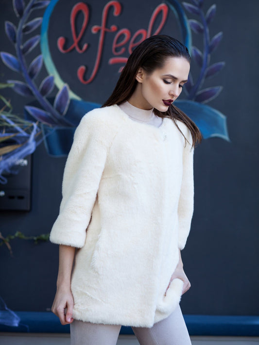 Faux fur women's coat - Chinchilla Knitted Graphite