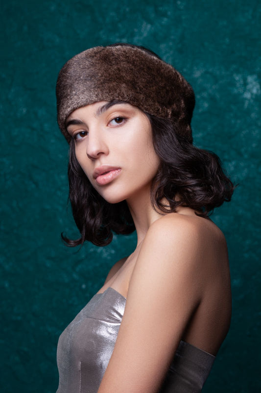 Faux fur women's headband - Chinchilla Knitted Graphite