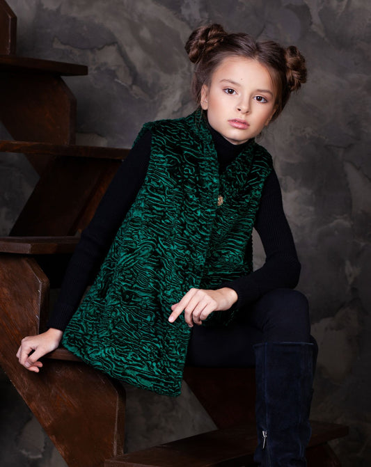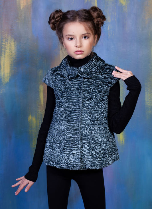 Faux fur kid's vest - Chinchilla Knitted Graphite
